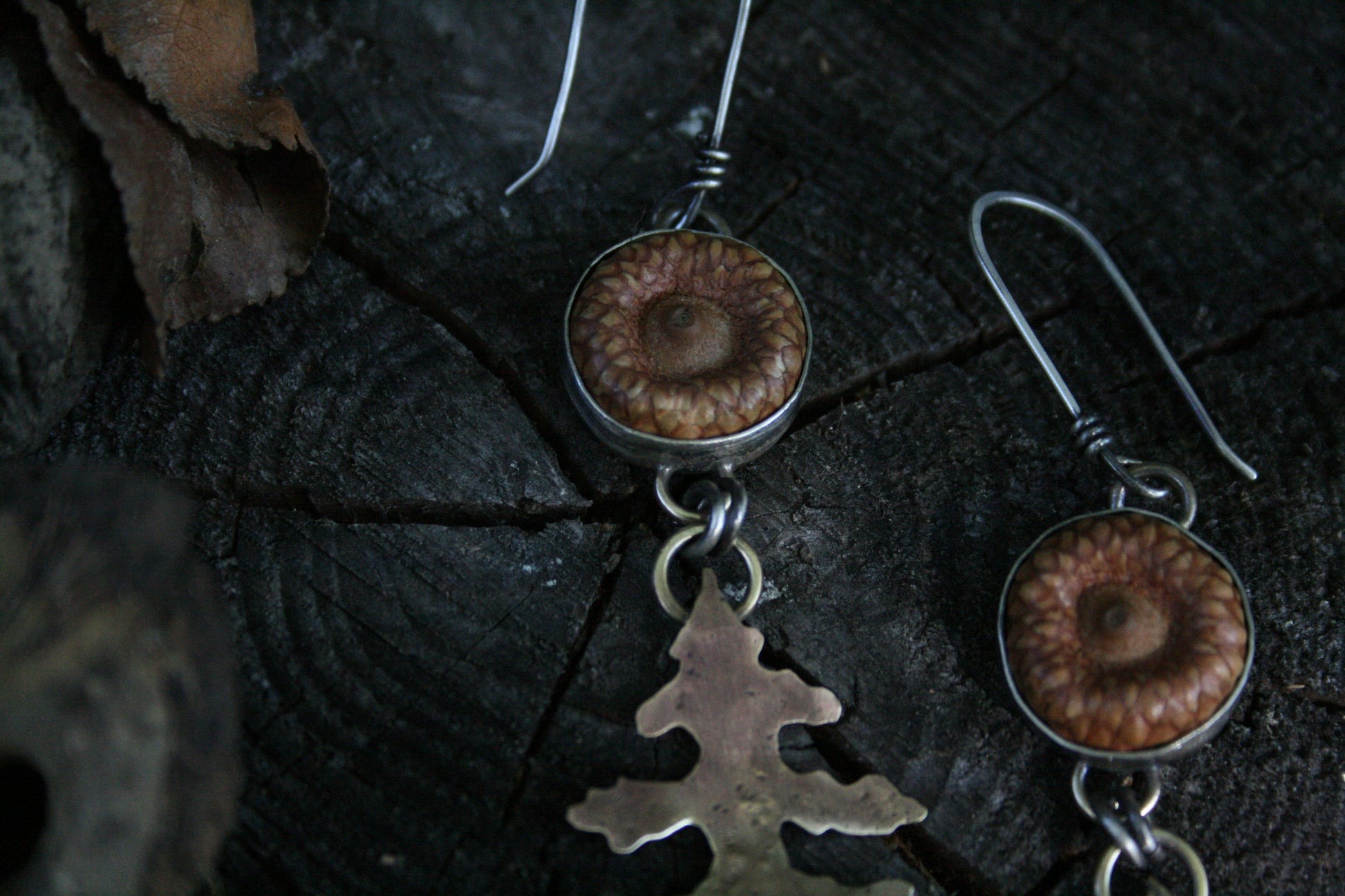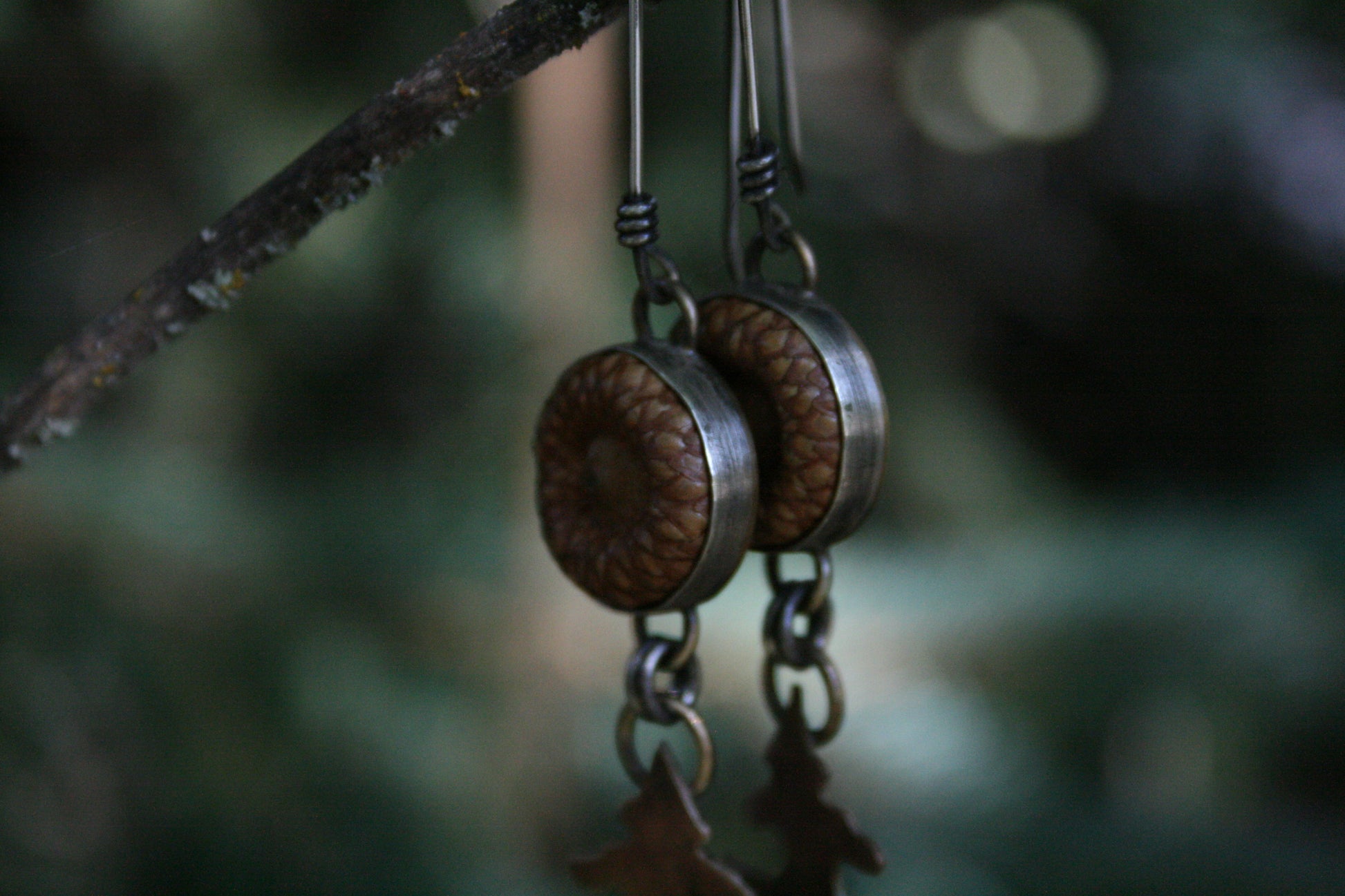 Northern red oak acorns - hand sawed, sanded and set in sterling silver