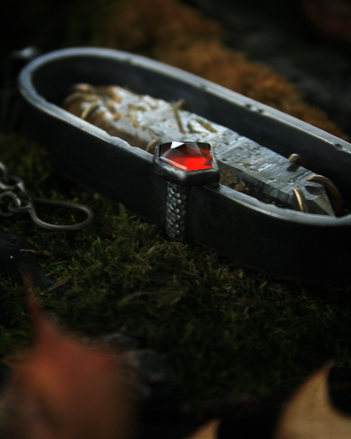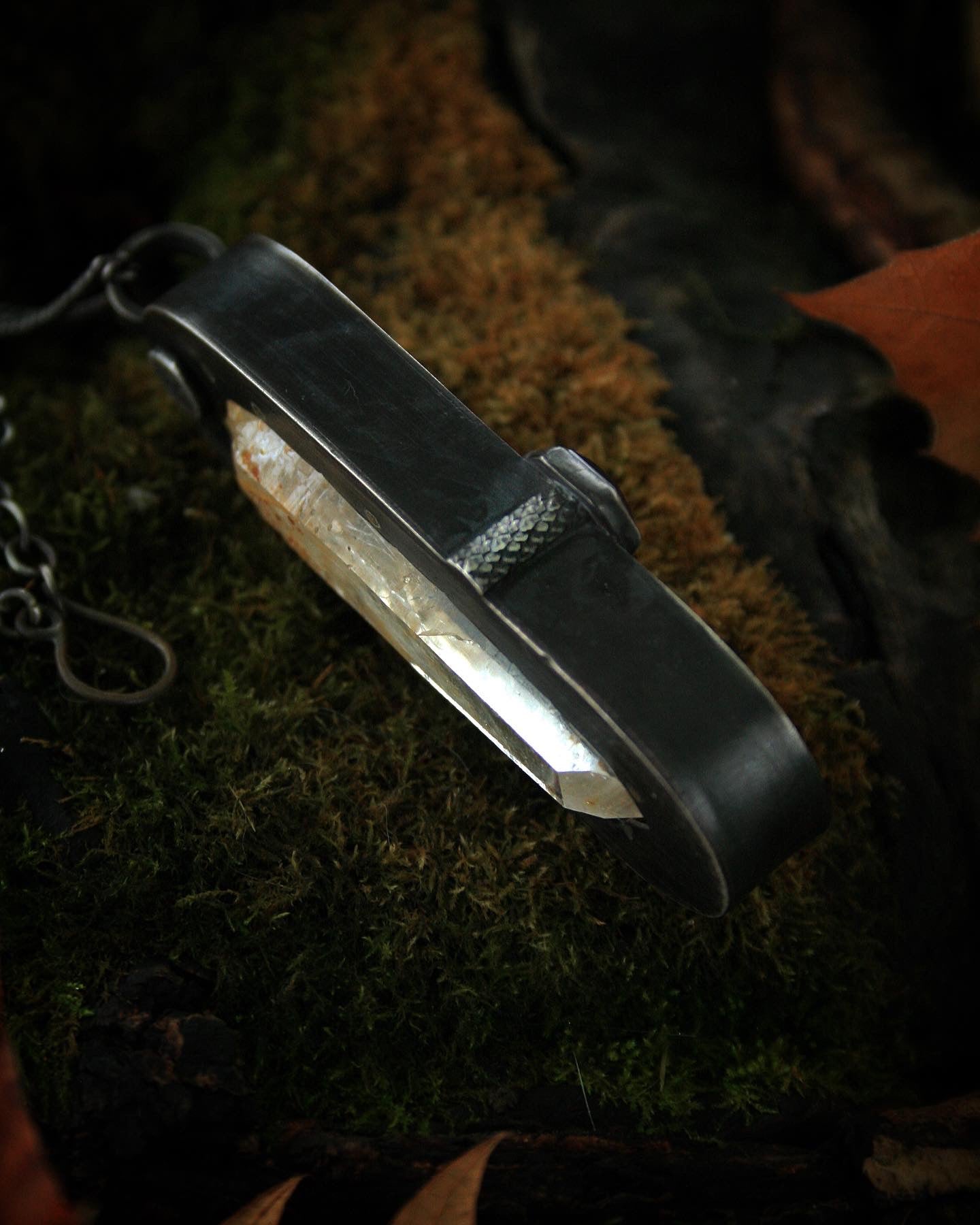 Thick silver shadowbox. Brass claws. Dragon skin. Light window on back. Measures 3”x1”. Chain is adjustable from 16”-19”.