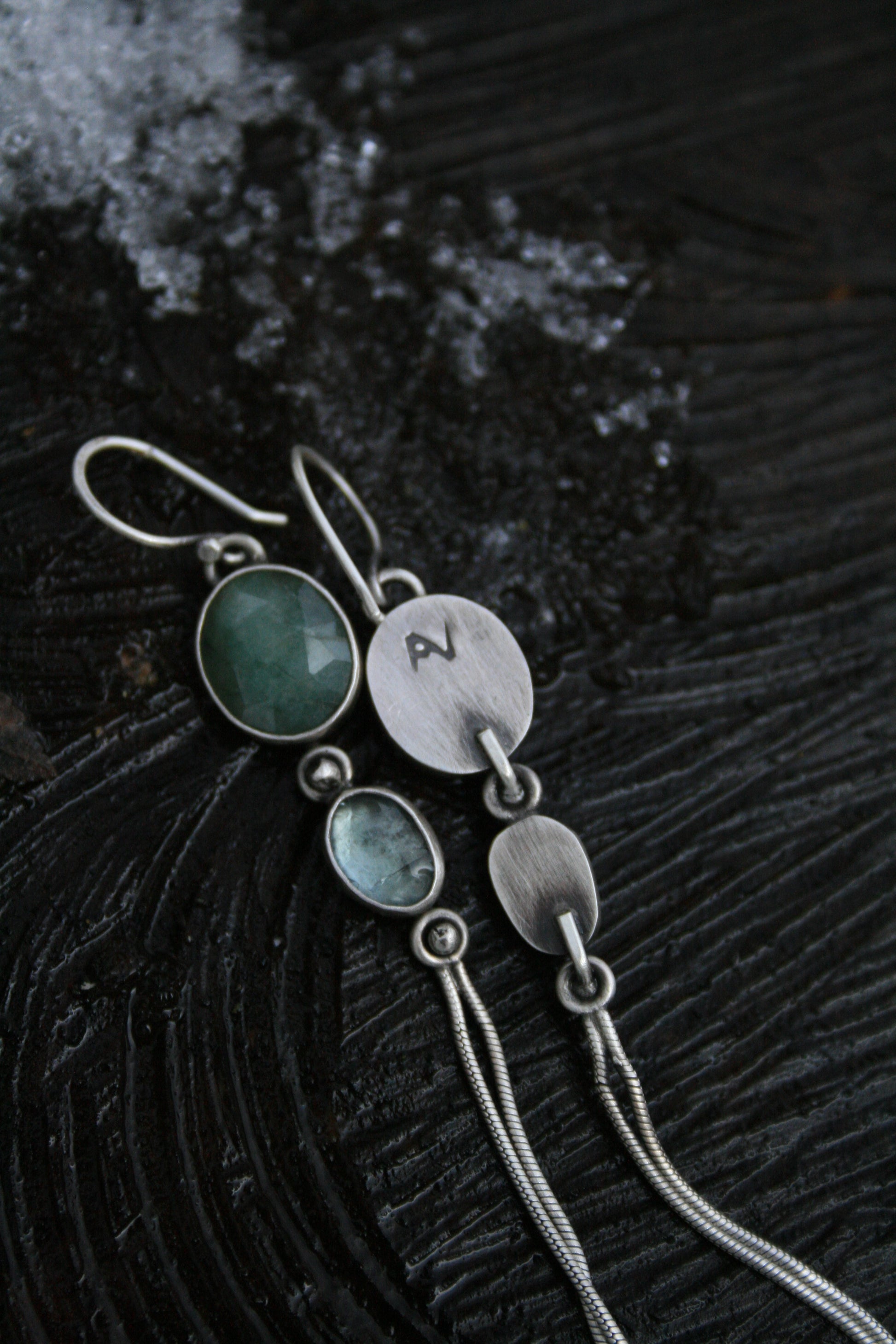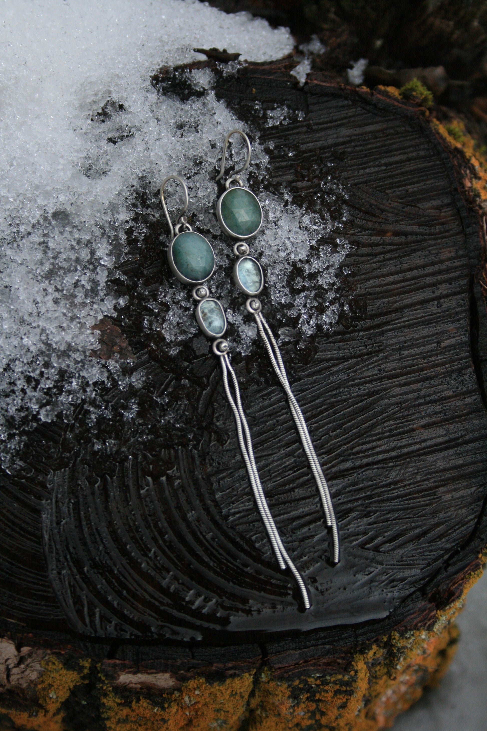 Silver. Snake chain dangles for some super delicate, flowy movement. Measure 4.25” from top of earhook.