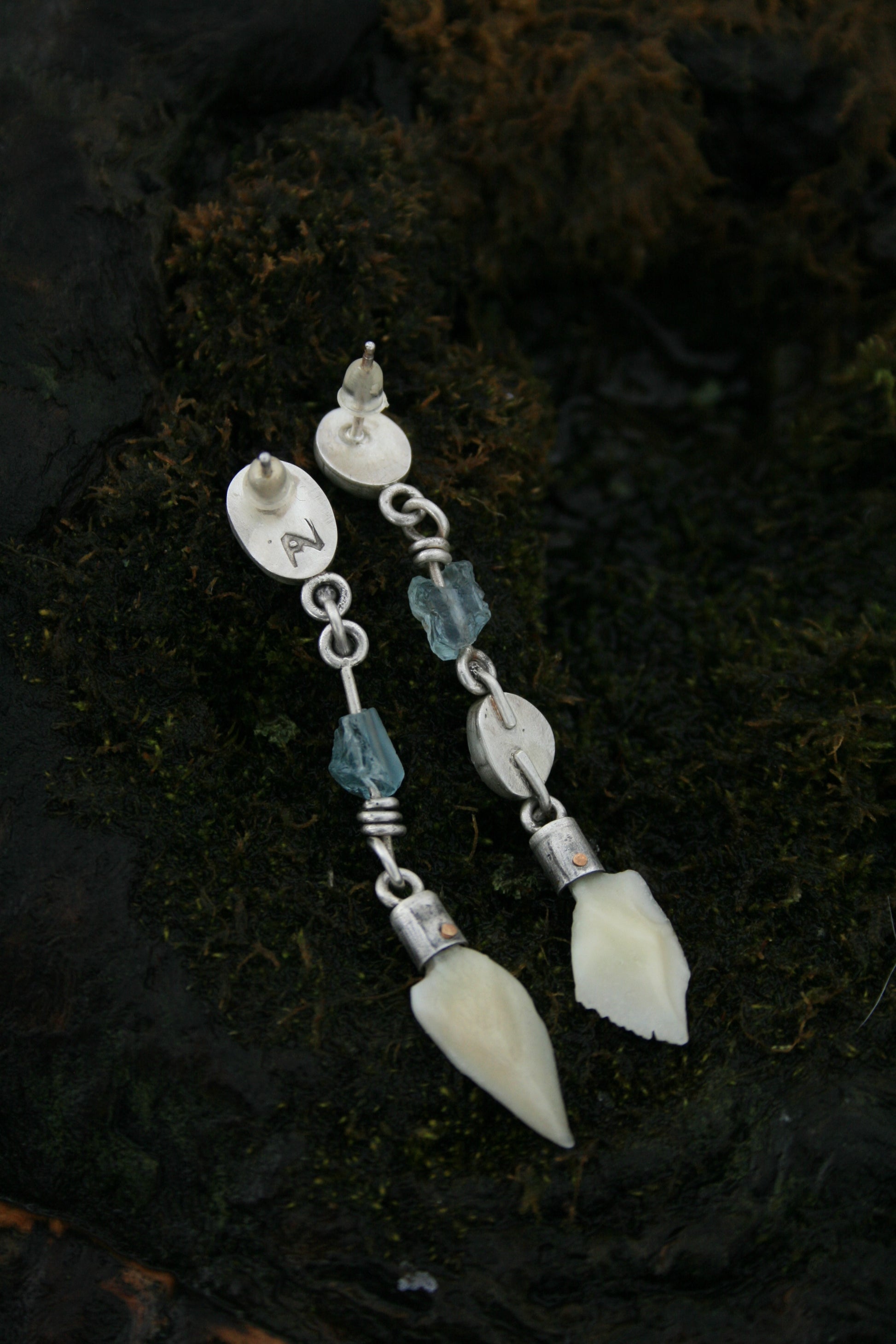 Rosecut aquamarine. Sea urchin spines riveted in brass. Silver. Measure ~2.5” long.