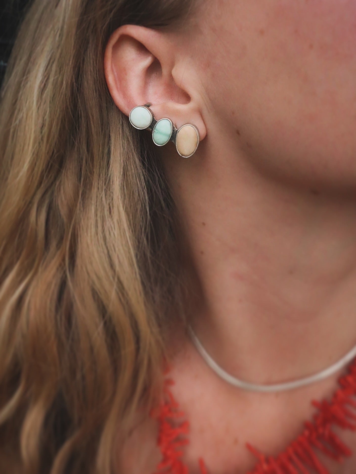 Turquoise ear climbers ✨ I used a cuff + stud structure for these - super simple, super sturdy, and sizing should be pretty inclusive!